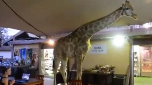 Los comensales disfrutaban de un momento de descanso en el restaurante de Lion Park, en las afueras de Johannesburgo (Sudáfrica), cuando una inesperada visita dejó a todos atónitos. Es que apareció, sin invitación previa, una jirafa caminando entre las mesas. Tranquilo, el animal se dirigió hacia una de las bocas de expendio de comida mientras los turistas la fotografiaban.