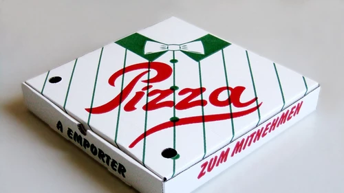 Las cajas de pizza, al igual que otros tipos de envases de alimentos, contienen en su composición perfluorocarbonos (PFCs), utilizados para que los envoltorios sean resistentes a la acción del agua y de la grasa, así como percloratos, usados como agente antiestático en el sellado de los envases alimenticios. Estos compuestos químicos están relacionados con graves afecciones para la salud como pueden ser la disfunción tiroidea, un desarrollo lento prenatal y postnatal cerebral o la degeneración testicular.