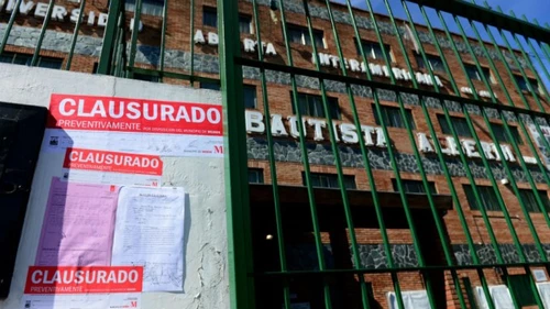 Varios padres se autoconvocaron en las puertas del colegio clausurado Juan Bautista Alberdi de avenida Gobernador Arias al 3500 de la localidad de Castelar para solidarizarse con quienes pasaron un muy mal momento.