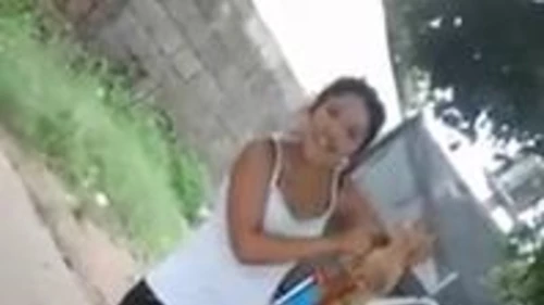 Allí se puede ver como dos de las chicas tratan al animal como si fuera un jueguete. Lo revolean y tironean mientras se ríen y disfrutan.