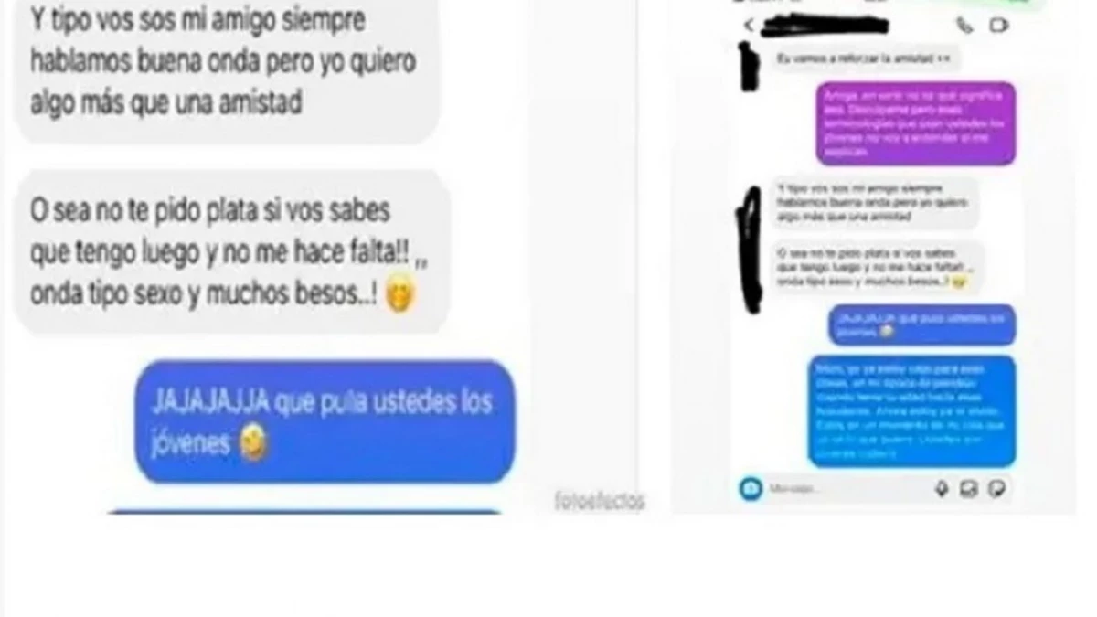 "Ey, vamos a reforzar la amistad", le propuso Moni a través de una conversación por chat. El jubilado quedó desconcertado y no lo ocultó: "Amiga, en serio, no sé qué significa eso. Disculpame, pero esas terminologías que usan ustedes, los jóvenes, no voy a entender, si me explican".