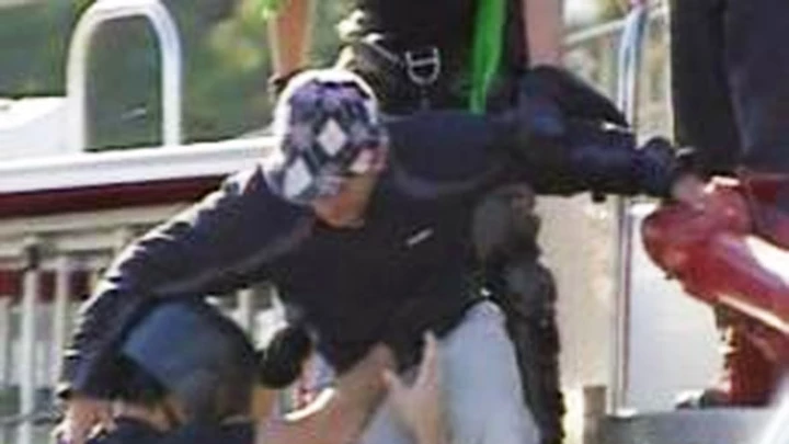 Después de tener en vilo durante cuatro horas a los automovilistas y espectadores qee siguieron el hecho por TV cual reality show, Minuet desistió de suicidarse. Su novia lo convenció y el Grupo Halcón logró bajarlo pero el hombre está deprimido y por eso fue derivado anoche al instituto psiquiátrico Open Door, en Luján. "Bajate y hablamos", fue el mensaje de texto que Clara Alves, su novia, le mandó a Adán, y logró que bajara.