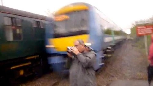 El susto ocurrió en Inglaterra. En la estación de trenes de Thurston, ubicada en la ciudad de Suffolk. Un hombre filmaba el pasar de una locomotora a vapor que recorría los rieles por última vez y, al tener toda su atención sobre la vieja máquina, no tuvo en cuenta el otro carril y eso casi le cuesta la vida.