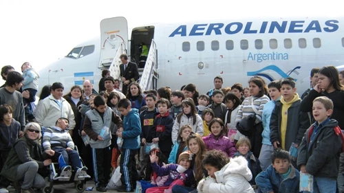 El Aeroparque Jorge Newbery de Buenos Aires se llenó de caras de sorpresa y emoción; la de los chicos que por primera vez veían al gigante avión desde tan cerca y la de los padres acompañantes quienes también volarían por primera vez en su vida.