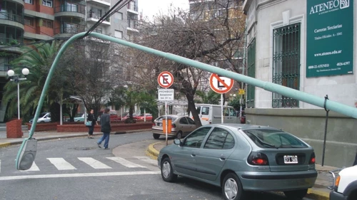 La Policía investigaba anoche cómo ocurrió el derrumbe del palo, en la esquina de Mauriño y Neuquén, y si se trataba de un poste perteneciente a alguna empresa de televisión por cable o bien al alumbrado público.