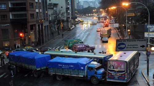 El accidente ocurrió minutos después de las 6 en la esquina de las avenidas San Juan y Paseo Colón, donde por causas que se investigan, y en medio de la lluvia, colisionaron dos unidades de la línea 64 y un camión con acoplado de la ciudad bonaerense de Chacabuco.