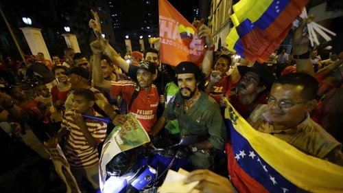 Apenas hizo el anuncio, los partidarios de Chávez se lanzaron a las calles a celebrar ruidosamente con caravanas de autos, banderas y fuegos artificiales.