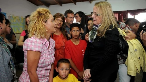 La funcionaria recorrió la escuela 119 de González Catán, que alberga a los evacuados, junto con el intendente de ese partido del sur del Gran Buenos Aires, Fernando Espinoza.