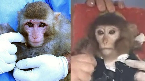En las fotos hechas antes y después del lanzamiento del mono iraní al espacio el animal no se parece a sí mismo, arrojando dudas de que el simio realmente haya regresado con vida.