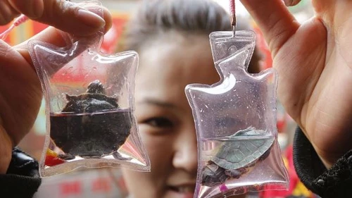 En China, varios mercados de Beijing comenzaron a fabricar llaveros que contienen pequeños animales vivos dentro de unas bolsas de plástico.