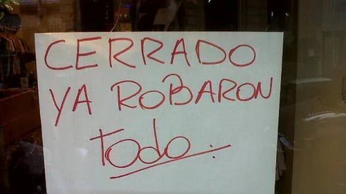 El dueño de un negocio de Videla entre Lavalle y Brown de Quilmes centro, avisó a sus clientes por medio de carteles pegados en la vidriera del local que cierra definitivamente a causa de los robos que viene sufriendo sucesivamente.