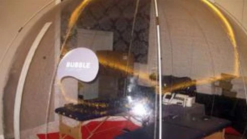 El novedoso aparato es una burbuja con paredes plásticas que posee un sistema que permite la circulación del aire puro. Este efecto genera en el cuerpo mayor cantidad de glóbulos rojos y regenera con más velocidad los músculos, además de causar una relajación psíquica extra y un descanso en las vías respiratorias.