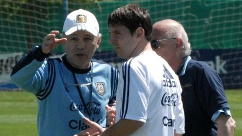 El director técnico de la Selección probó hoy el equipo para visitar mañana a Bolivia con el esquema 5-3-2, la presencia del capitán Lionel Messi y seis variantes con respecto al triunfo ante Venezuela.