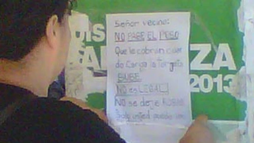 "No pague el peso cuando recarga la tarjeta SUBE. No es legal, no se deje robar. Solo Ud. puede evitarlo", advierten los carteles que pegaron en las paradas de colectivos en la localidad de Matheu, donde se comenzó con la cruzada contra los inescrupulosos comerciantes.