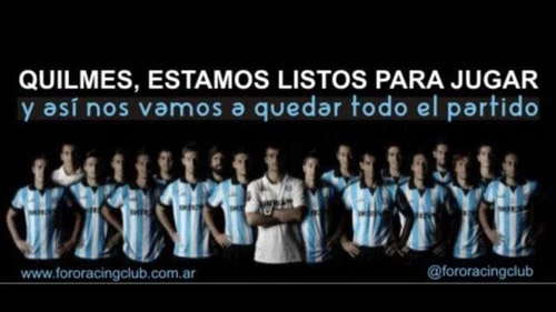 Se trata de la página creada por fanáticos fororacingclub.con.ar. “Si no pierden con Quilmes hay balas para todos!”, publicaron. Allí mismo los simpatizantes avisan que “hay que ir para atrás” y se justician: “El que no lo entienda así, no es de Racing o no vivió RACING desde la entraña misma de Avellaneda y demás barrios del sur y Capital federal, ni sintió lo que es irse al descenso en la cancha de ellos y pasar 2 años vagando por la "B". Nosotros somos hinchas de Racing, no de sus jugadores, técnico y dirigentes, y este plantel PERDIO LA DIGNIDAD en día que le regalaron el partido a Independiente y por goleada...ya le ganamos a Argentinos, a San Juan, ahora hay que entregarles los puntos SI O SI!”.