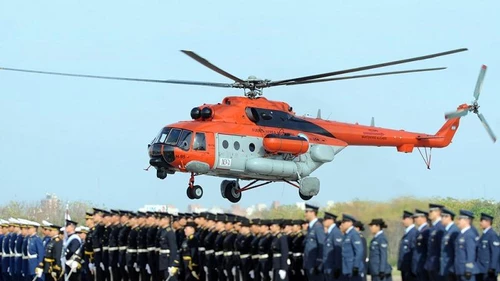 Bajo un cielo plomizo, una escuadrilla de cuatro aviones C-130 sobrevolaron la ceremonia recordando a los pilotos caídos durante el conflicto, mientras el ministro pasó revista de las fuerzas. El mal tiempo no permitió el pasaje de aviones de combate Mirage, A-4AR, ni Pucará, pero se pudo apreciar dos helicópteros Bell 212 y un Mi-17.