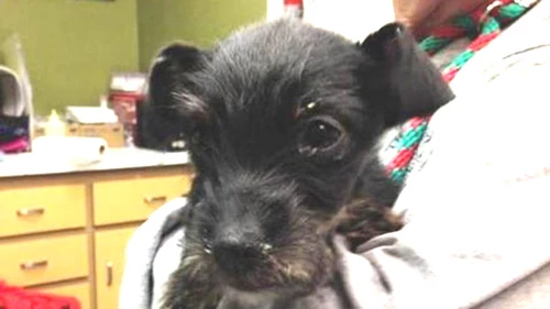 Toni Fugate, vocera del refugio de la ciudad, dijo que el perrito estaba deshidratado y desnutrido. No obstante, confió en que sobreviva.