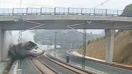 Las impactantes fotos de la tragedia ahora se complementan con un video grabado por una de las cámaras del ferrocarril, que captó el momento exacto donde el tren descarriló en una curva. Se cree que iba a más de 180 kilómetros por hora, el doble de lo permitido para esa zona.