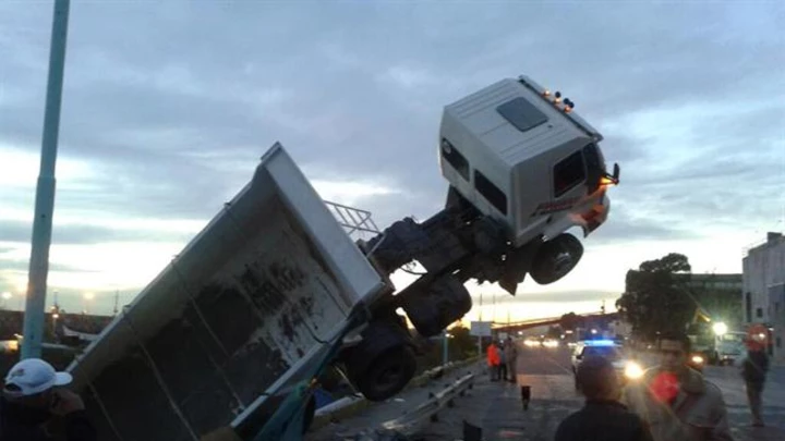 El hecho ocurrió a las 6.30, cuando -por motivos que se desconocen- el camión que estaba estacionado comenzó a deslizarse y terminó suspendido en el aire a punto de caer al río.