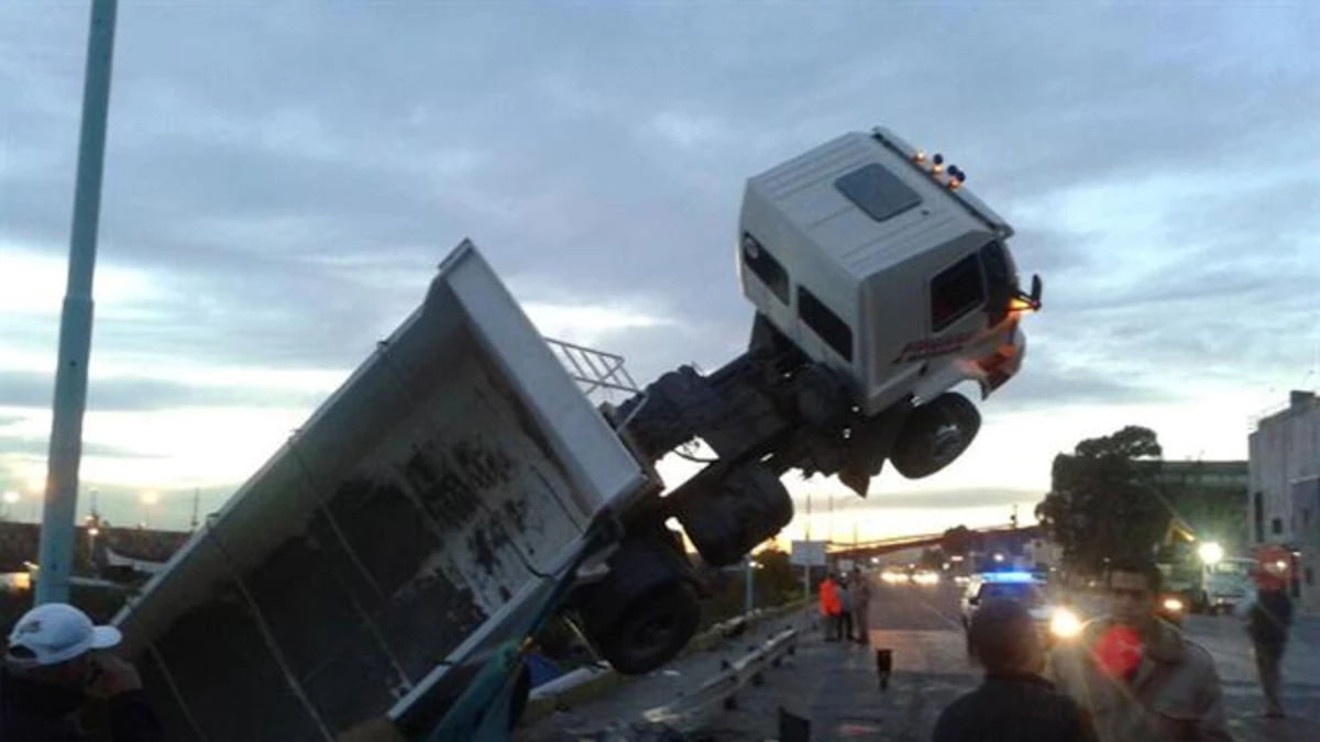Un camión estacionado perdió el control, se deslizó y casi terminó en el río en Costanera Norte.
