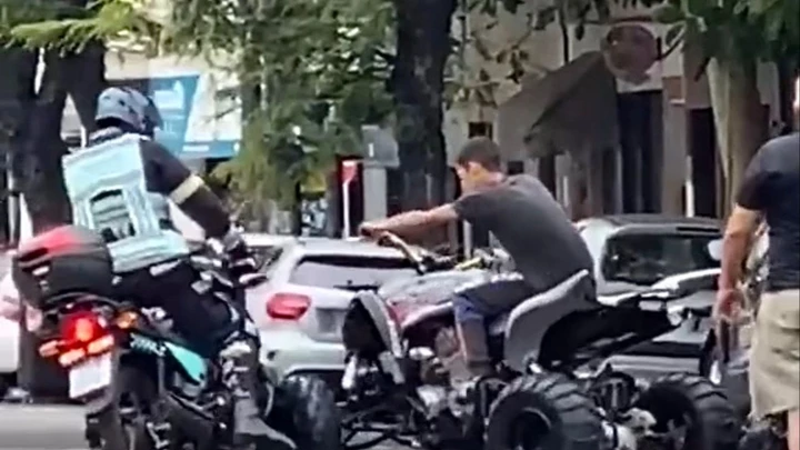 En el imaginario popular, el cuatriciclo es un vehículo reservado para la tierra, la arena y otros paisajes agrestes. Sin embargo, un hombre maniobraba sin casco en Avenida Cobo y Viel, una zona transitada por colectivos, coches y peatones.