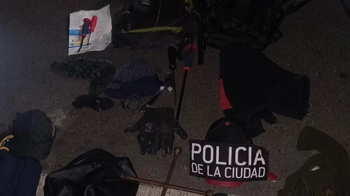 Ante la presencia de testigos se practicó la requisa de los tres delincuentes encontrando entre sus pertenencias diversos elementos utilizados para el ilícito: tres destornilladores, un par de guantes, dos mochilas con prendas de vestir y dos teléfonos celulares.