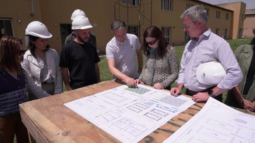 El intendente de Esteban Echeverría, Fernando Gray, junto con la ministra de Hábitat y Desarrollo Urbano de la Provincia de Buenos Aires, Silvina Batakis, recorrieron las obras de un complejo habitacional de 262 viviendas que se está construyendo en Esteban Echeverría. Con apoyo del Instituto de la Vivienda, que depende del Ministerio de Hábitat y Desarrollo Urbano bonaerense, la Comuna avanza en la infraestructura urbana y los trabajos de las casas dispuestas en ocho manzanas.