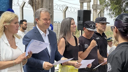 El intendente recorrió dichas instalaciones en el marco del acto por el segundo aniversario de la institución, durante el cual se realizó la entrega de reconocimientos por su compromiso y vocación de servicio a agentes del servicio penitenciario bonaerense, a jefes y jefas de áreas de dicha dependencia, y a los agentes que recibieron su ascenso.