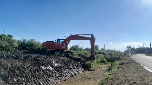 Algunas de las intervenciones fueron en el canal paralelo a la vera de la calle Chaco, donde una retroexcavadora con brazo extensible de gran porte removió los sedimentos, raíces y basura que se acumula y va obstruyendo el libre escurrimiento del agua.