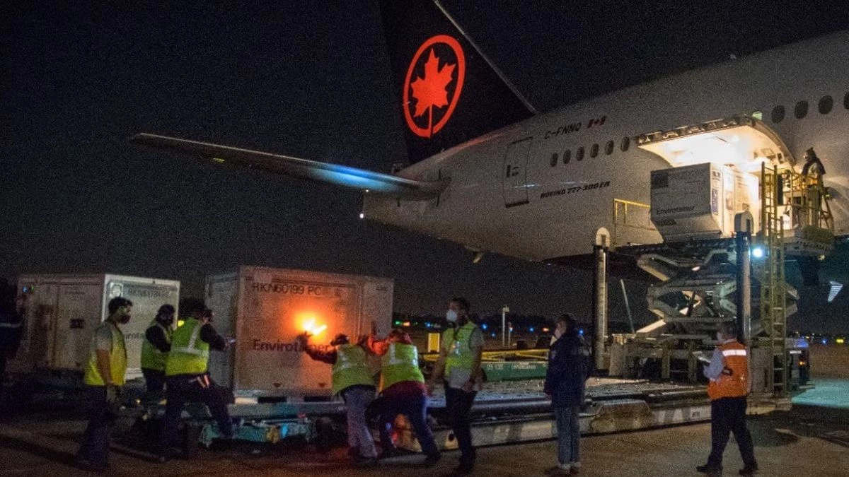 Las vacunas arribaron en un vuelo de la compañía Air Canada, que tocó pista en el aeropuerto Internacional de Ezeiza a las 19.51 con 1.654.500 dosis en sus bodegas.