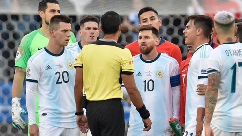 Ese mismo torneo, Messi fue suspendido por Conmebol luego de haber calificado como "corrupta" a la organización del fútbol sudamericano.