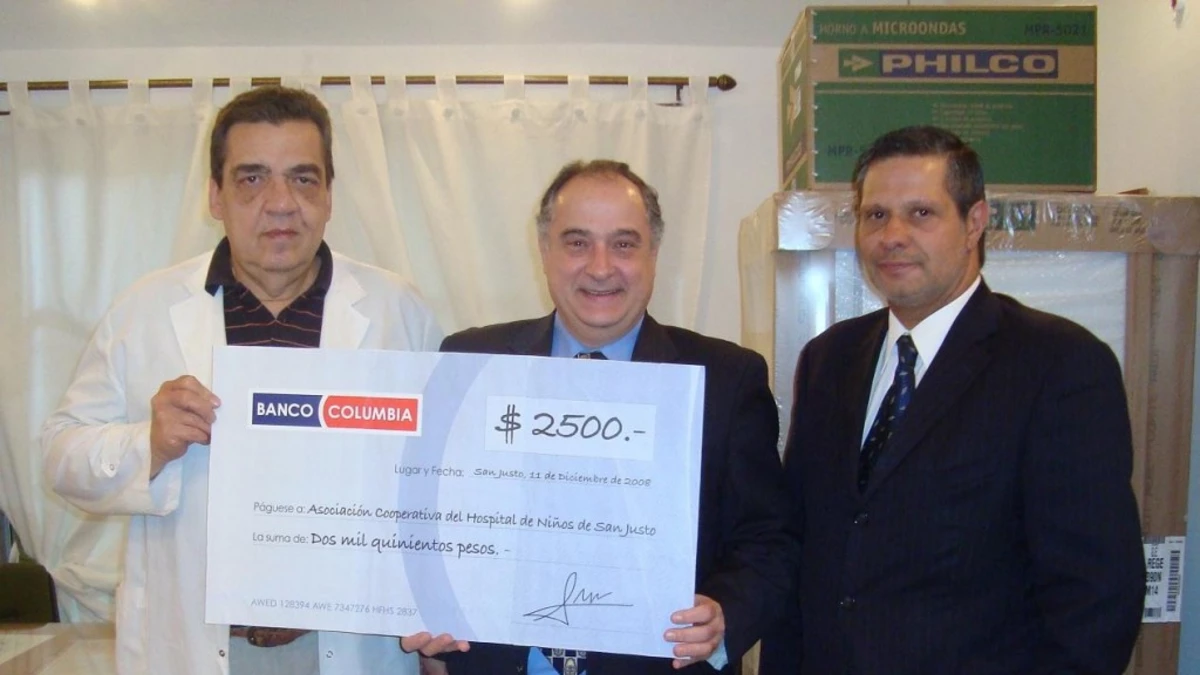 Con motivo del compromiso asumido con la localidad de San Justo tras la apertura de su nueva sucursal y en coordinación con el Concejo Deliberante dependiente de la Municipalidad de La Matanza, Banco Columbia realizó la donación de una heladera con frezzer, un microondas y $2500 en efectivo destinados a nuevos equipamientos. En dicho acto se hicieron presentes directivos del Banco y el Director del Hospital.