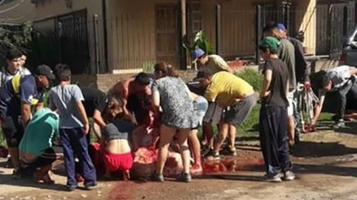Luego de que un camión con ganado volcara tras una mala maniobra de su conductor en Belén de Escobar, los vecinos atraparon a una de las vacas que había logrado escapar del vehículo y la carnearon en plena calle.