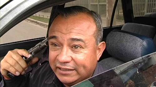 El policía Juan Fernández con el arma en la sien. (Foto: ElRadardelSur.tv) |