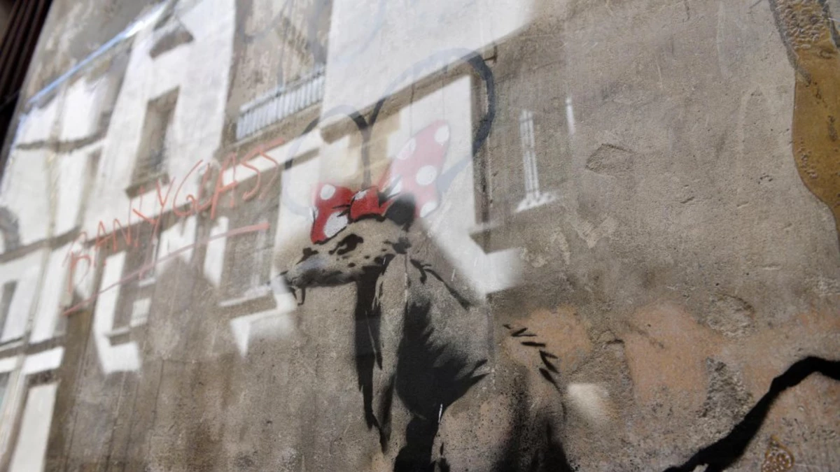 Detalle de uno de los trabajos supuestamente realizados por el artista anónimo británico el 26 de junio de 2018 en París.