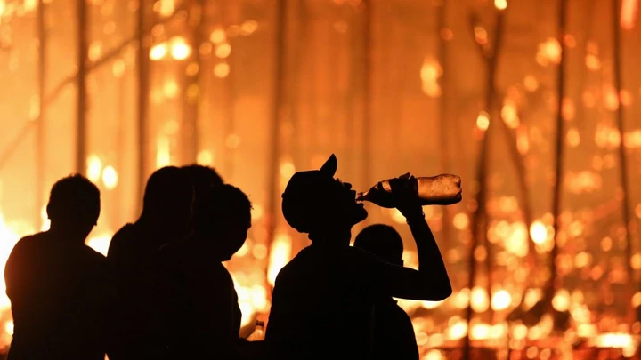 Según las autoridades locales, el incendio pudo haberse originado en una cocina, al estallar una olla de presión. En la imagen, un residente se refresca mientras ayuda con el resto de sus vecinos a los bomberos, el 17 de diciembre.