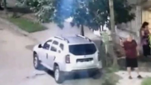 El sujeto comenzó a gritarle a sus vecinos mientras portaba un arma de fuego en cada mano y, de repente, empezó a disparar, mientras su esposa estaba detrás de él, según se puede apreciar en imágenes captadas por las cámaras del municipio.