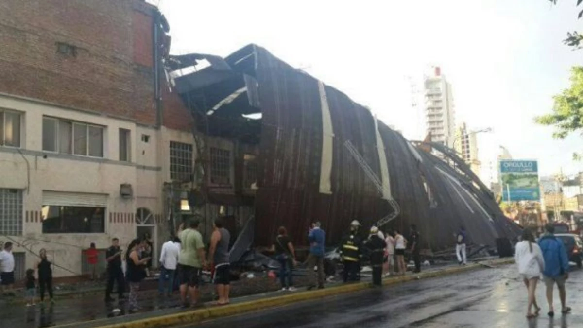 Como consecuencia del temporal que azotó este lunes al país, el techo de la sede social del Club Los Andes, del distrito de Lomas de Zamora, voló y quedó en la avenida principal Hipólito Yrigoyen y un auto quedó atrapado.