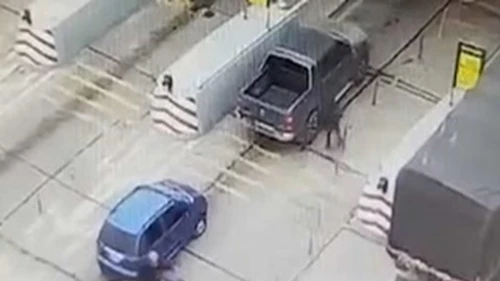 El conductor estaba a punto de pagar y que le levanten la barrera cuando un motociclista se bajó, corrió hasta la Amarok, agarró la plata y volvió a subirse para darse a la fuga a alta velocidad.