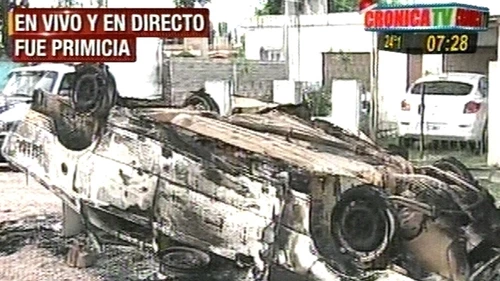 Vecinos y allegados a la víctima llegaron anoche hasta la casa del presunto homicida y tras apedrear la casa volcaron su auto, un Fiat Duna color blanco, y lo prendieron fuego.