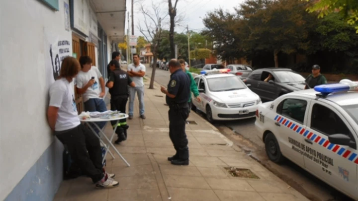 Los chicos estaban invitando a otros estudiantes a participar de la Ronda por la Memoria en la Plaza 12 de Octubre que se realizó el miércoles por la tarde, cuando dos móviles del SAP llegaron hasta el lugar.
