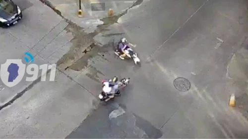 Sin embargo, al avanzar unos pocos metros, sintió un golpe seco: era una Motomel S2 ocupada por dos personas que la chocó de costado y provocó que los tres cayeran al suelo.