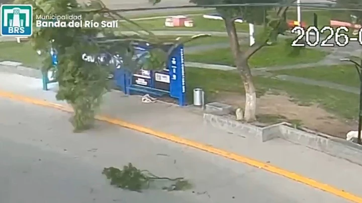 El techo de la parada evitó que lo golpeen. Por su tamaño y peso, los troncos podrían haberlo matado. Instantes después, un camión de bomberos puso a resguardo a la víctima y liberó la calle de ramas.