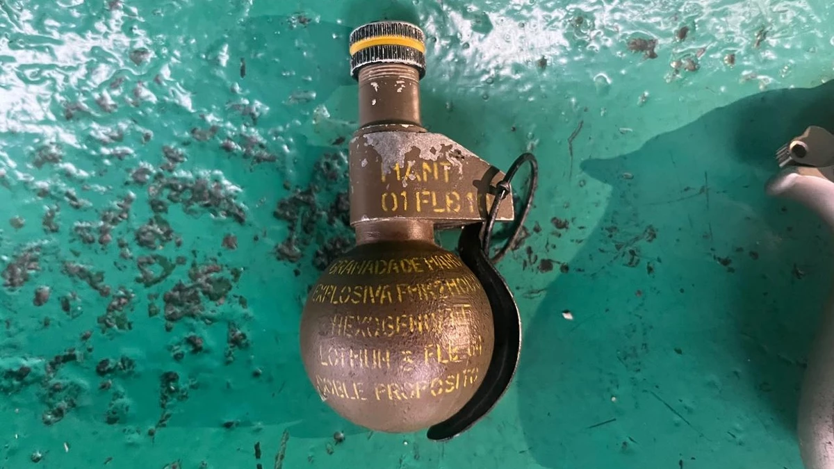 En ese preciso instante, extrajo de entre sus prendas una granada explosiva con la que amenazó al personal policial, indicando que la detonaría si intentaban arrestarlo. Paralelamente, y no conforme con dicha intimidación, mientras sostenía la granada con una mano, con la otra esgrimía una pistola con la que amedrentaba e inmovilizaba a su víctima.