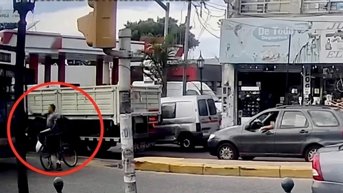 Como consecuencia del impacto, la víctima cayó al asfalto mientras la unidad arrastró la bicicleta varios metros, según se observa en las imágenes captadas por un tótem de seguridad del Centro de Operaciones Tigre (COT).