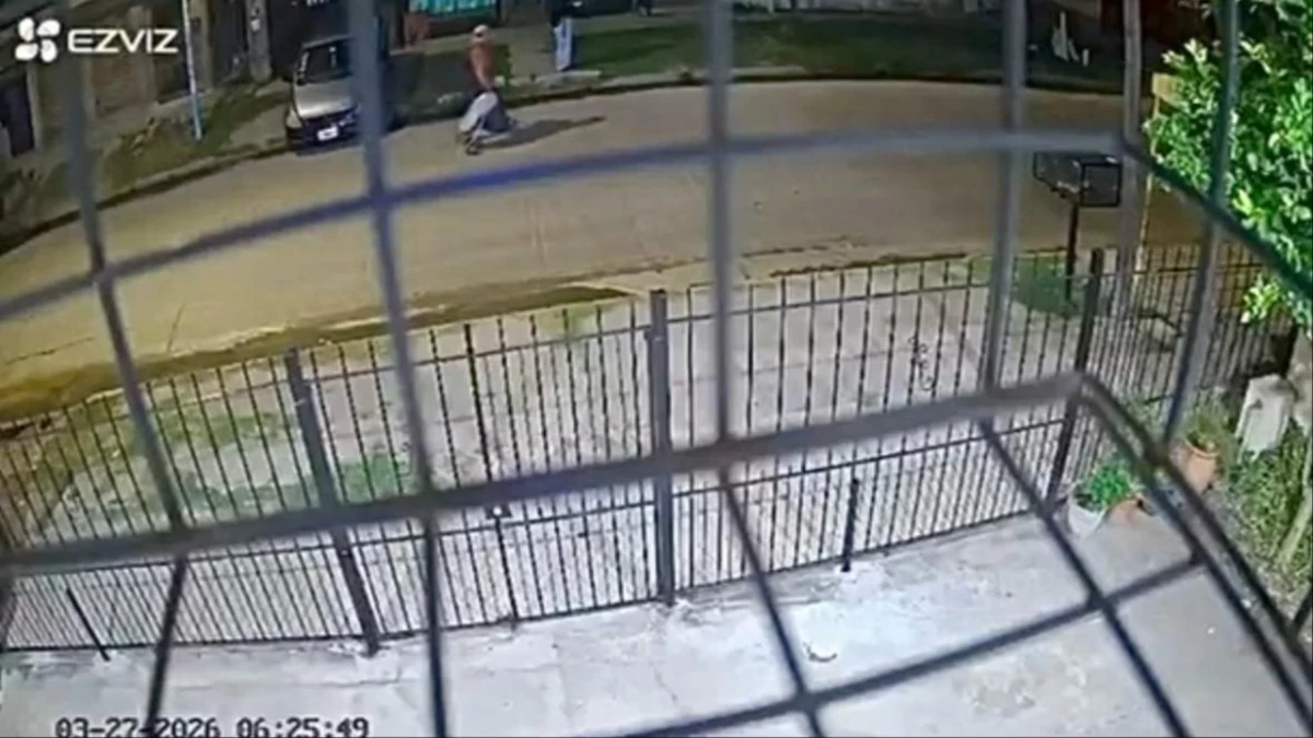 Sin embargo, no estaba sola en la cuadra. Las cámaras de seguridad de una casa ubicada en la vereda de enfrente registraron la presencia de un hombre que llevaba un carrito para hacer las compras, al estilo jubilado.