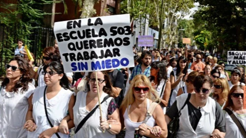 reclamo de justicia por Cinzia Pellegrini, la docente golpeada por el padre de una alumna.