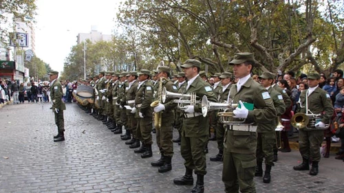 El martes 11 de mayo se celebró el Día del Himno Nacional Argentino, en la entrada al Palacio Municipal de San Miguel. Eran las 11:45 horas, cuando la banda de música de la Escuela de las Armas del Ejército Argentino llegaba a paso redoblado a la calle Sarmiento.