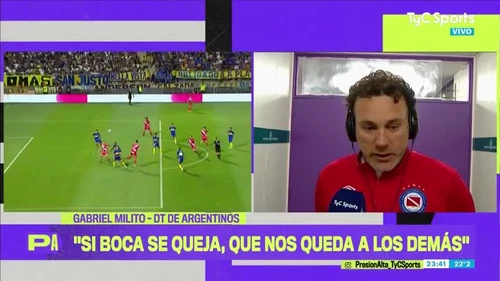 Fue una noche caliente en el partido que Boca Juniors le ganó 1-0 a Argentinos Juniors por la primera semifinal de la Copa Argentina, que se disputó en el Estadio Malvinas Argentinas de Mendoza. Hubo una polémica con el gol anulado al Bicho de La Paternal que generó la bronca de su entrenador, Gabriel Milito. Luego del encuentro, el ex defensor disparó munición gruesa sobre el arbitraje, el manejo los clubes poderosos, en particular por las declaraciones previas del vicepresidente Xeneize, Juan Román Riquelme.