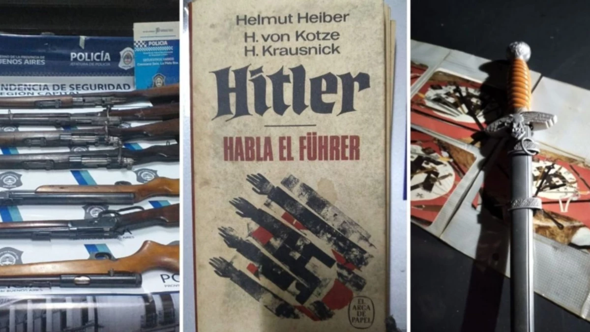 En el barrio era conocido como "El loco del fusil", pero lo cierto es que en su casa tenía mucho más que eso. Así lo descubrieron los agentes que allanaron la vivienda de 11 entre 66 y 67, donde no solo encontraron un arsenal de revólveres y armas largas, sino también municiones, cuchillos y un sinfín de libros, fotos, posters y hasta llaveros alusivos al nazismo.